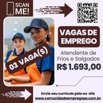 Atendente de Frios e Salgados, 03 vagas com salário de R$ 1693,00 para comércio varejista