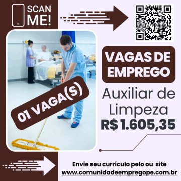 Auxiliar de Limpeza com salário de R$ 1605,35 para empresa de segmento educacional