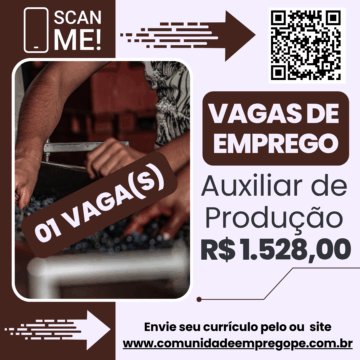 Auxiliar de Produção com salário de R$ 1528,00 para empresa de terceirização de mão de obra