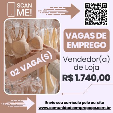 Vendedor(a) de Loja, 02 vagas com salário de R$ 1740,00 para atuar no Shopping Recife