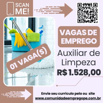 Auxiliar de Limpeza com salário de R$ 1528,00 para empresa do segmento de prestação de serviços