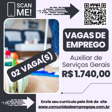 Auxiliar de Serviços Gerais com salário de R$ 1632,45 para indústria no segmento de limpeza e conservação