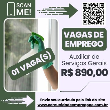 Auxiliar de Serviços Gerais com salário de R$ 1740,00 para comércio de equipamentos e utilidades
