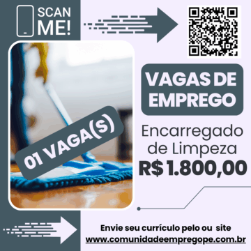 Encarregado de Limpeza com salário de R$ 1800,00 para empresa de terceirização