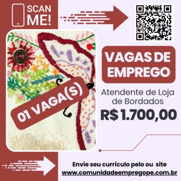 Atendente de Loja de Bordados com salário de R$ 1700,00 para segmento de produção de bordados