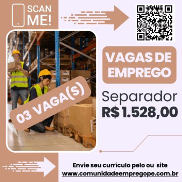 Separador, 03 vagas com salário de R$ 1528,00 para empresa do segmento de terceirização