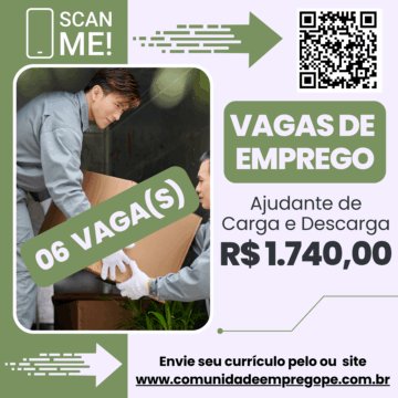 Ajudante de Carga e Descarga, 06 vagas com salário de R$ 1740,00 para transportadora de bebidas