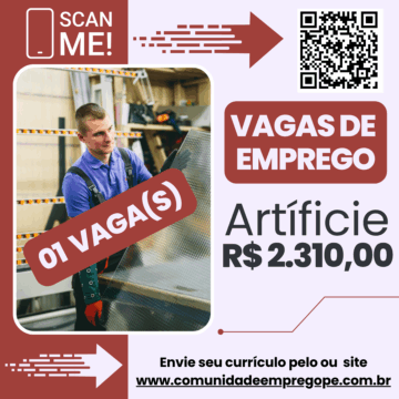 Artíficie com salário de R$ 2310,00 para empresa no segmento indústria