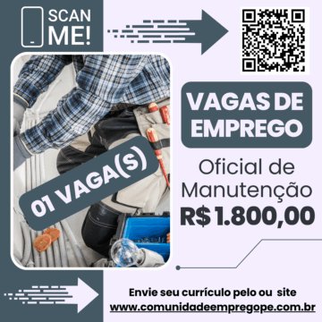 Oficial de Manutenção com salário de R$ 1800,00 para segmento de shopping center