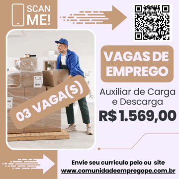 Auxiliar de Carga e Descarga, 03 vagas com salário de R$ 1569,00 para segmento de indústria de alimentos